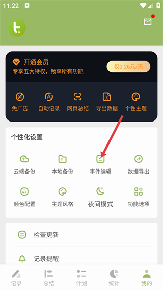 2、進(jìn)入【我的】頁(yè)面后,找到【事件編輯】選項(xiàng)并點(diǎn)擊,即可進(jìn)入事件管理的操作界面。