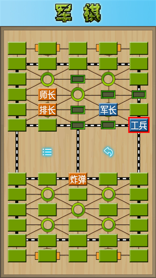4、棋子體系完整規(guī)范,雙方各有25個棋子,包含軍旗、旅長等中高級棋子及炸彈、地雷、工兵等特殊棋子各有數(shù)量,符合經典軍棋設定。