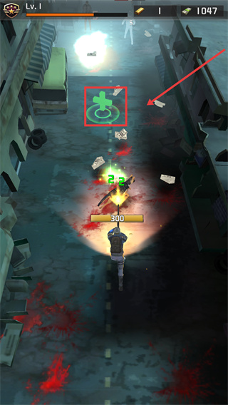 3、關卡中遇到【綠色十字標識】的道具時,優(yōu)先拾取以恢復狀態(tài),同時攻擊僵尸獲取【2-2】傷害對應的資源。