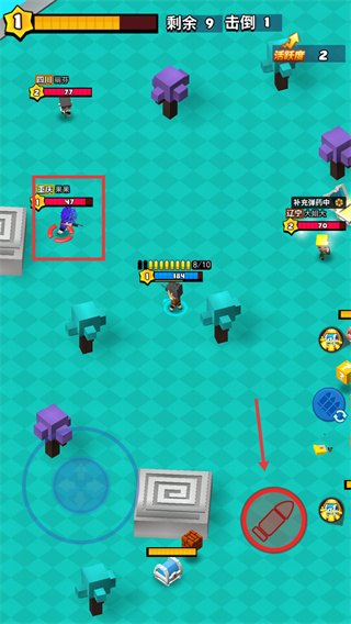 2、對局中點(diǎn)擊【彈藥按鈕】可對敵人發(fā)起攻擊,注意觀察敵方血條,可以先攻擊殘血目標(biāo)。