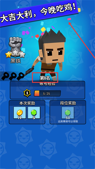 4、獲得【第1名】后可解鎖【黑鐵】段位獎勵,積累賬號經(jīng)驗(yàn)提升等級,同時領(lǐng)取本次獎勵的金幣與道具。