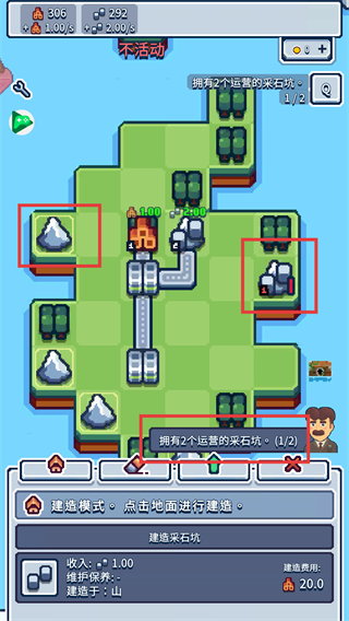 3、在【建造模式】下,點擊地面建造【采礦坑】,關(guān)聯(lián)【山】類資源點,開啟資源采集。