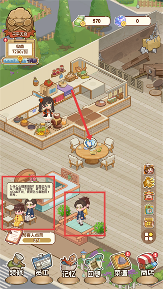 1、開始游戲后,點擊桌子上的點單圖標,就可以為客人進行點菜啦。