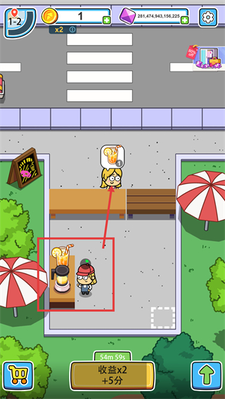 4、布置【甜甜圈攤】的商品與設(shè)備,開始接待顧客,獲取新攤位的經(jīng)營收益,同時推進區(qū)域的經(jīng)營進度。